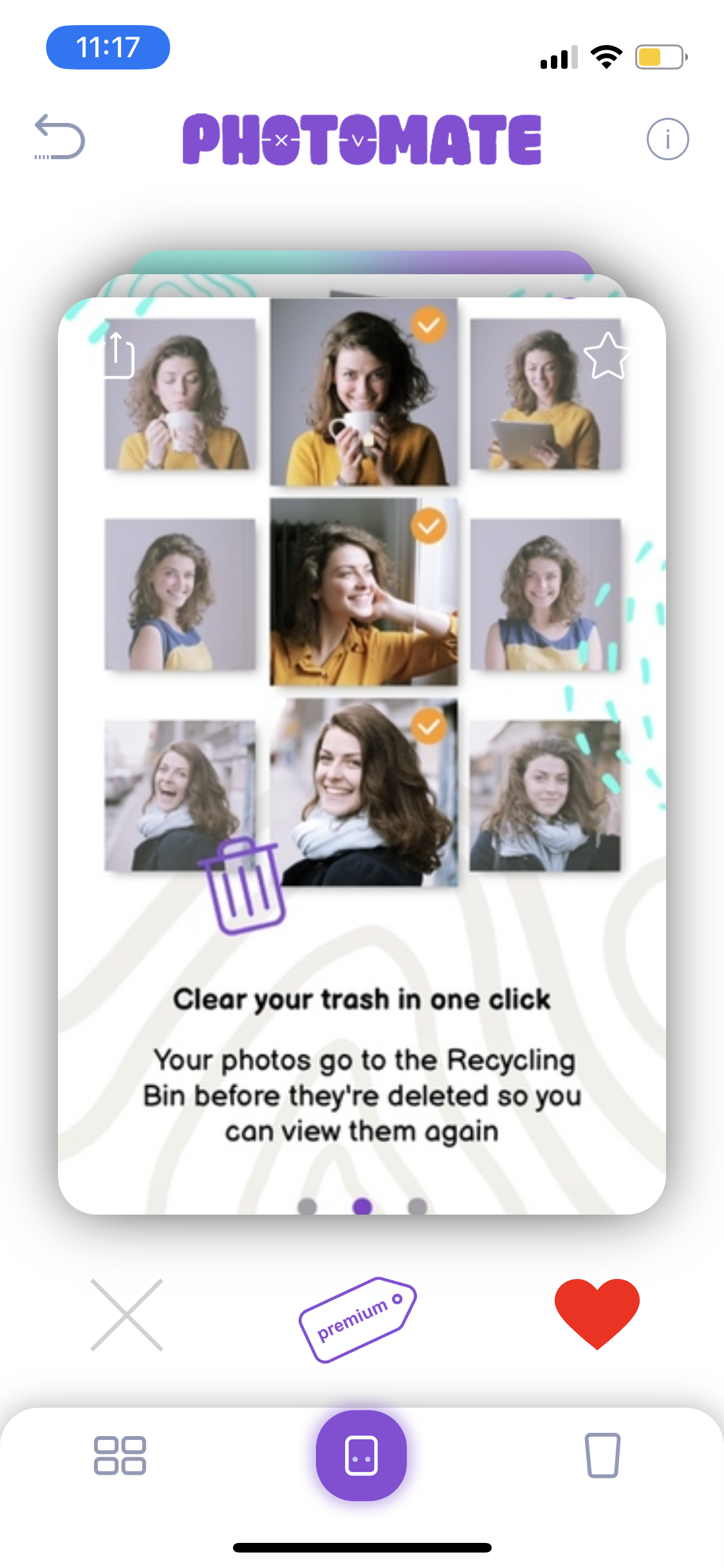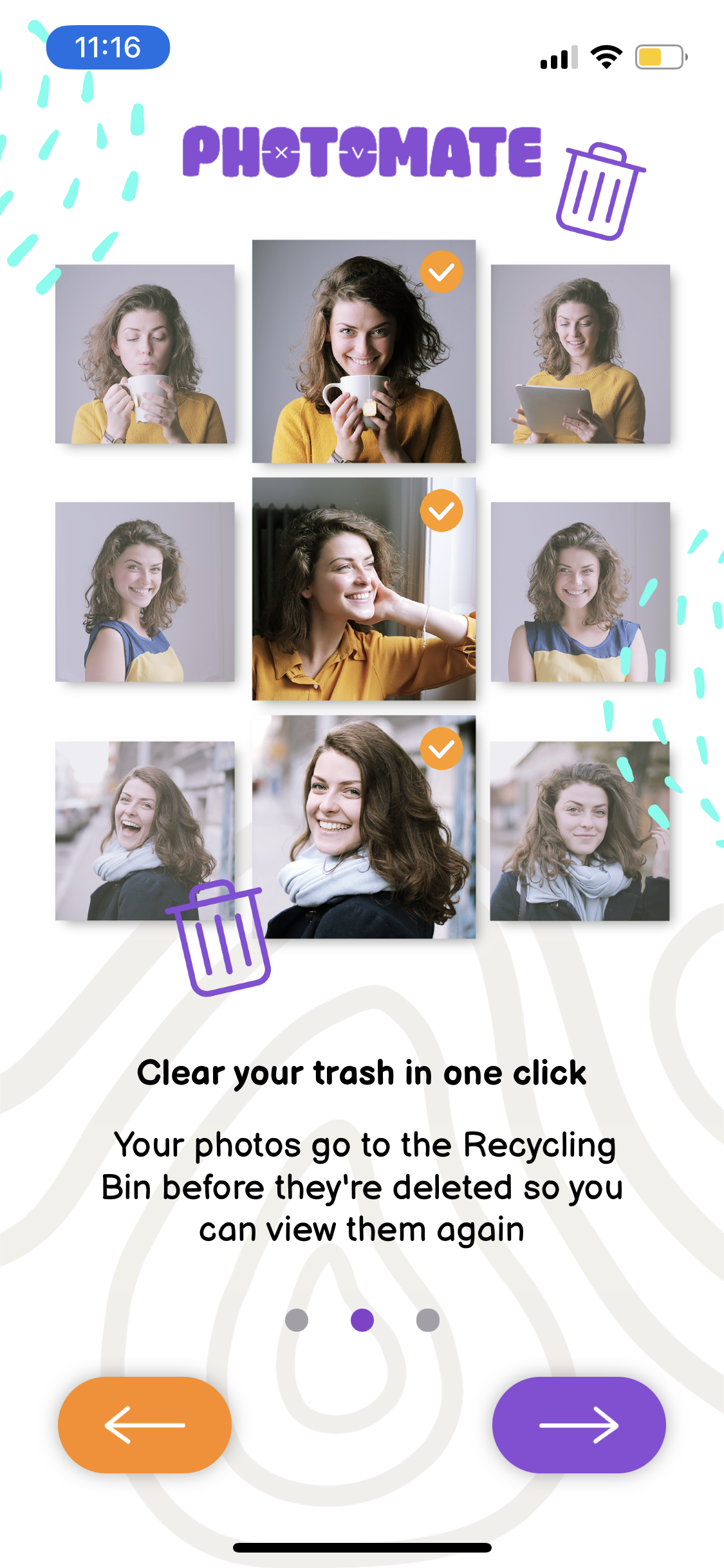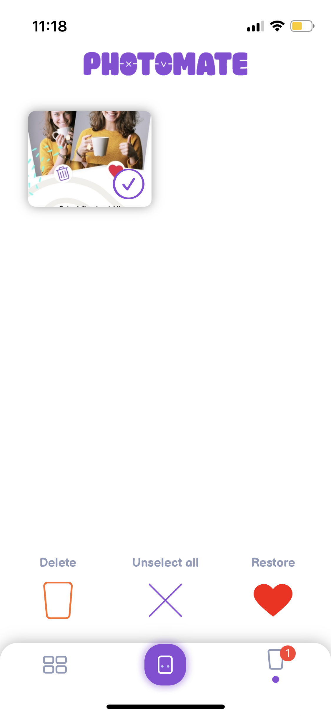 The photos you don’t like are first sent to the trash can. Before deleting, you can view them again, restore a photo, or simply delete everything in one click!