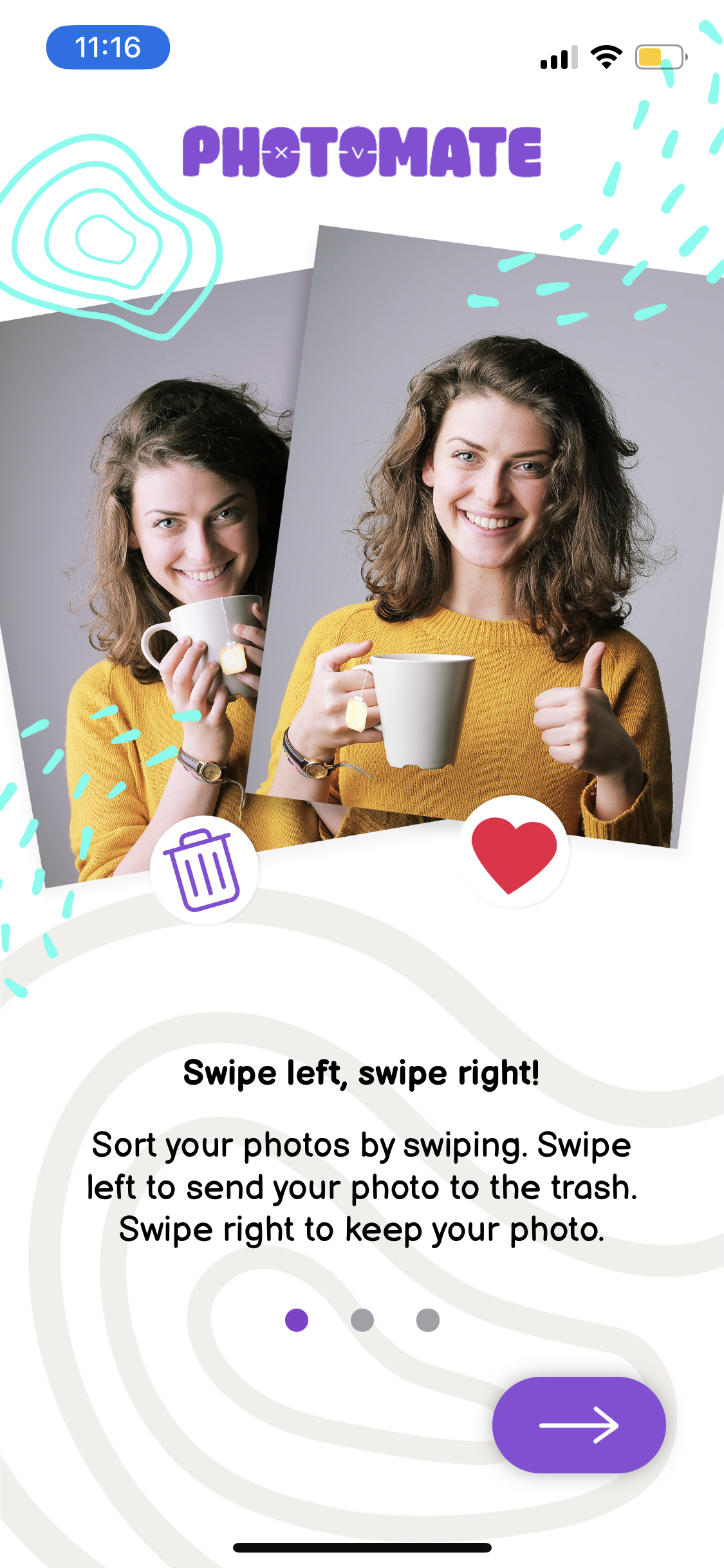 Swipe left to send a photo to the trash, swipe right to keep the photo. You can always remove a photo from the trash before the final deletion.
